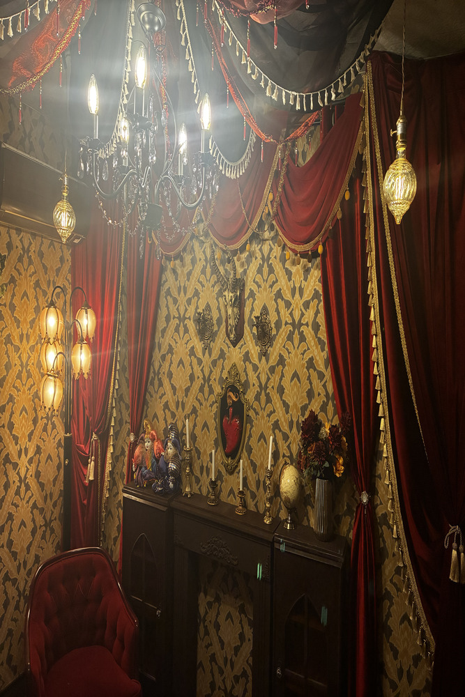 大正ロマン風な外観の古民家の中には
